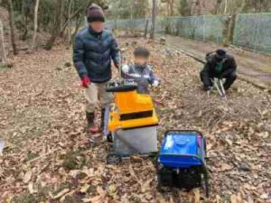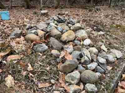 草刈り機を使うときの邪魔になるので、石を移動させます。