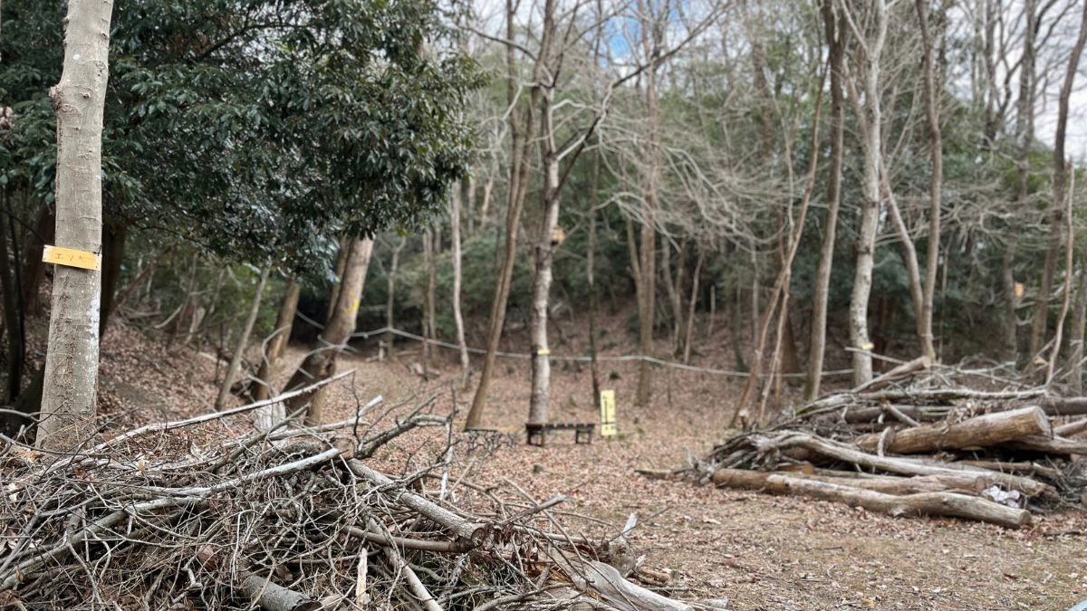 草刈り機を使うときの邪魔になるので、石を移動させます。