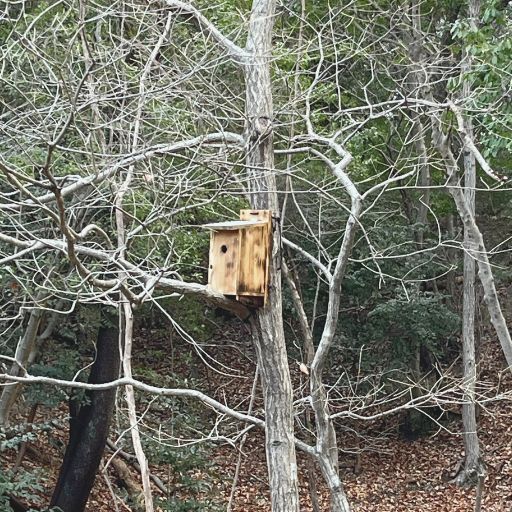 どの巣箱も雪をかぶって絵本みたい。