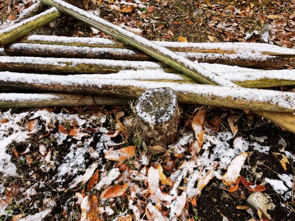 昨日、夕方ごろから雪が降り始め、今朝も積もった雪が見られました。