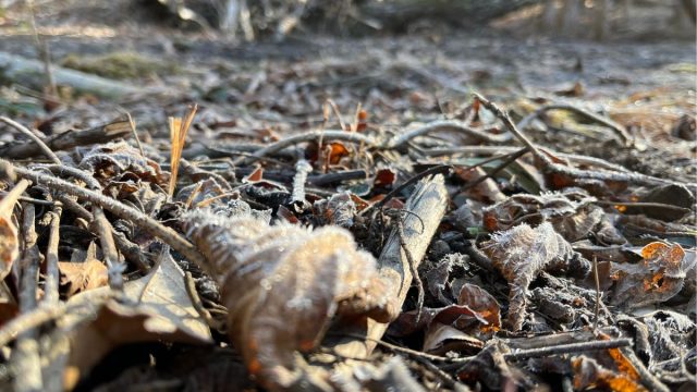 霜の降りた ふるさとの森