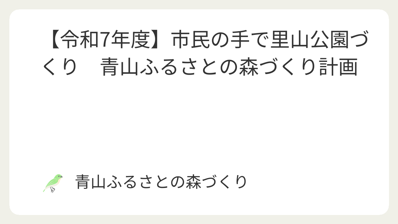 【令和7年度】市民の手で里山公園づくり 青山ふるさとの森づくり計画